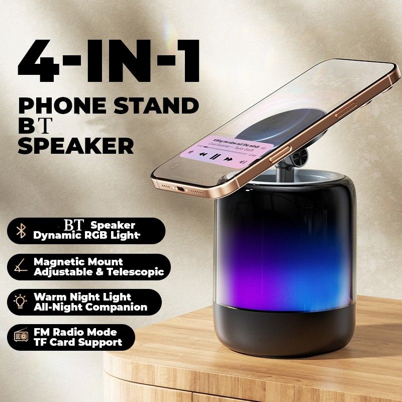 Productos En Tendencia Portable Dynaamic RGB Light FM Radio TF Card Adjustable 4in 1 Phone Stand With BT Music Speaker Outdoor